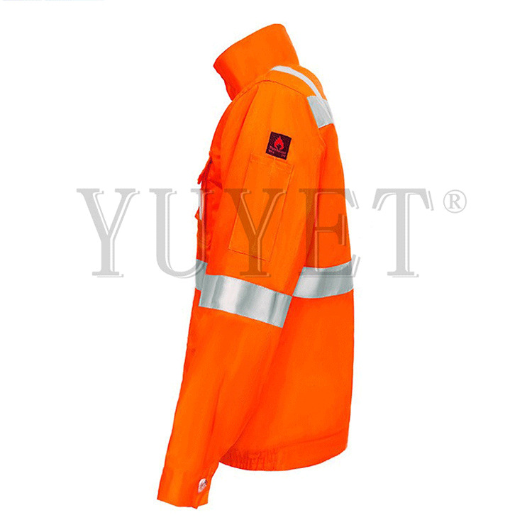LA认证工厂订做芳纶3A永久阻燃防静电耐磨防酸碱反光桔红色防护服