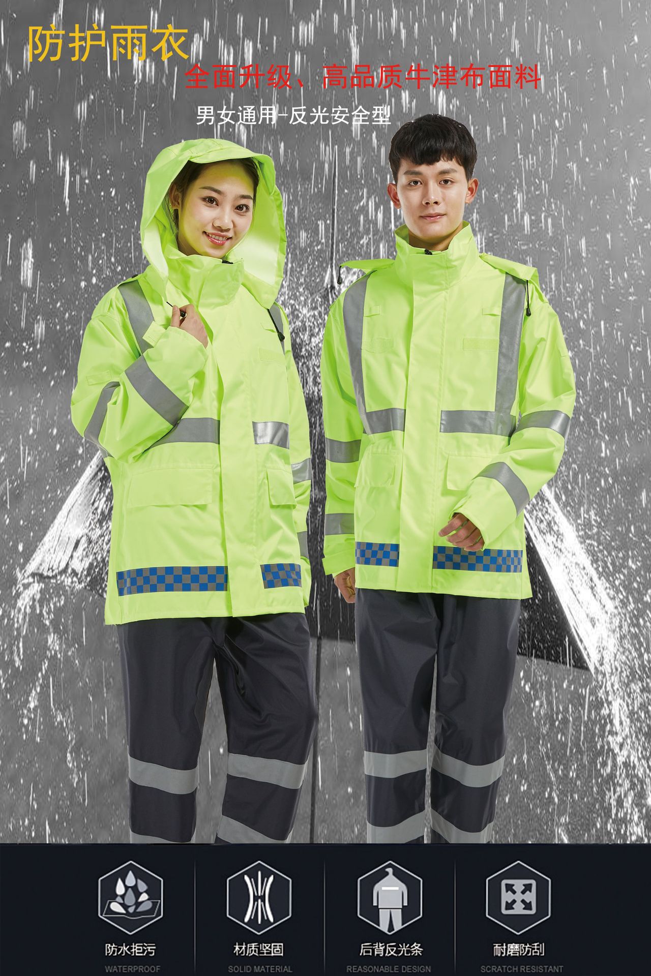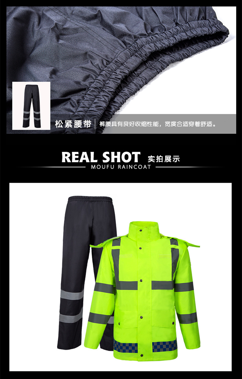 高品质户外高速路政交通执勤巡逻分体雨衣套装荧光黄绿反光雨衣
