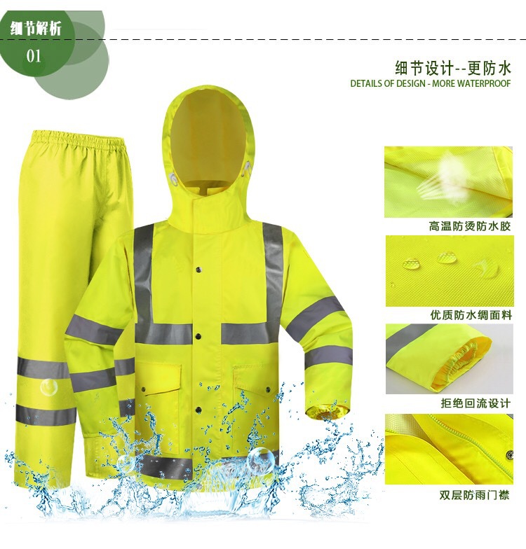 厂家加工定制批发雨衣套装交通执勤服分体荧光黄巡逻雨衣定制