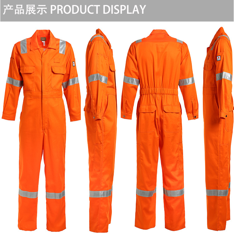 定制批发厂家直供橙色棉春秋阻燃工作静电保护劳保车间厂服连体服
