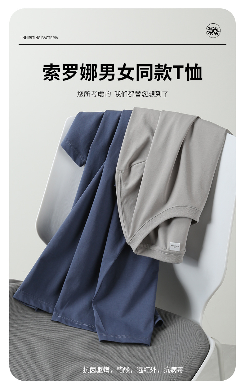 短袖T恤圆领宽松纯色T恤舒适抗菌Polo衫男女通用款