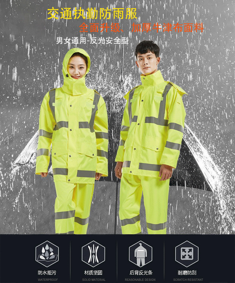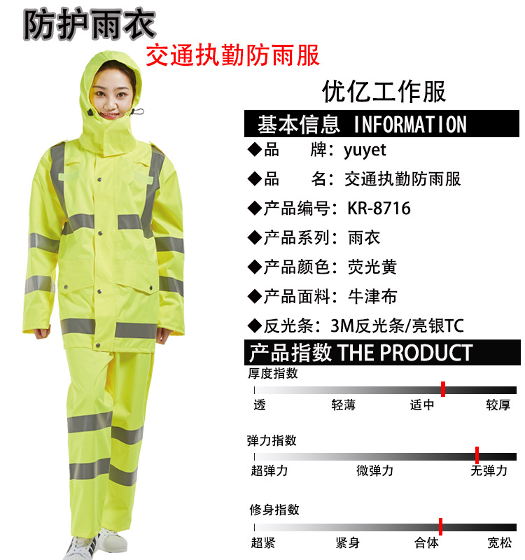 厂家加工定制批发雨衣套装交通执勤服分体荧光黄巡逻雨衣定制