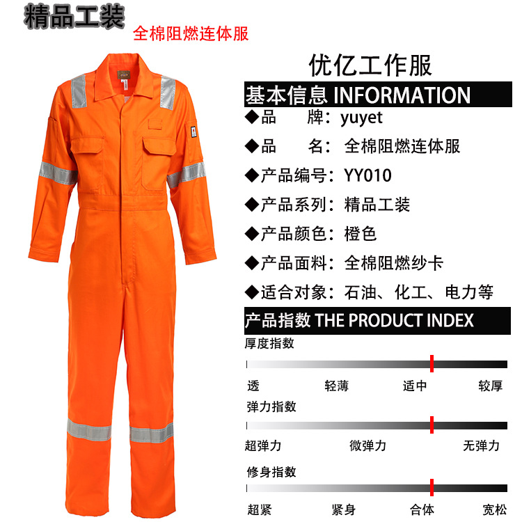 定制批发厂家直供橙色棉春秋阻燃工作静电保护劳保车间厂服连体服